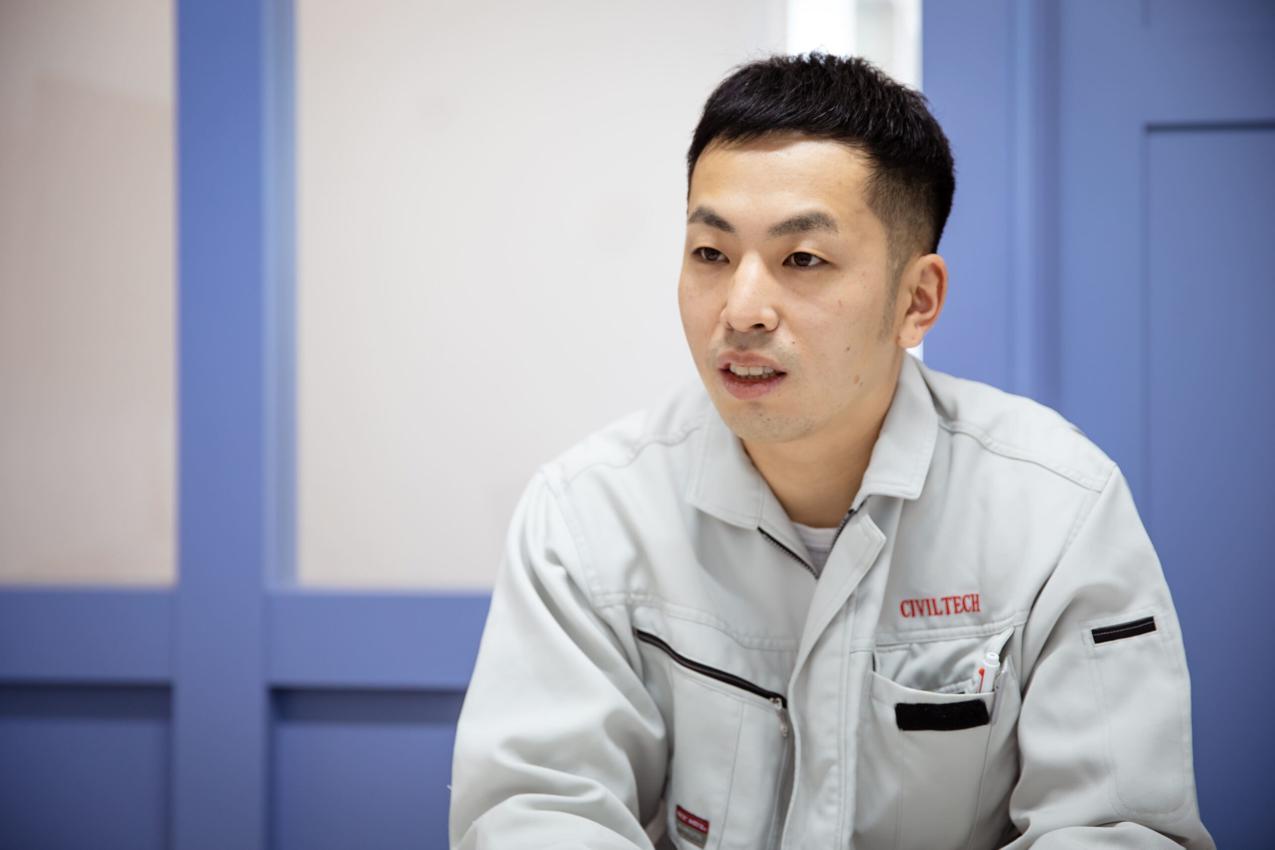 将来のために手に職をつけたいと思い転職活動をしていたときに、たまたまシビルテックのサイトを見つけました。シビルテックは資格を取得し、自分のできることを増やしていくことで手に職をつけられるのも、希望する仕事内容とも合っていました。そこから、後藤さんと永井さんのインタビューを読み、語っている内容がかっこよく、良い人そうだと感じて応募を決めました。